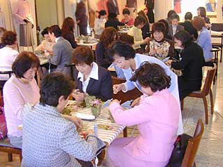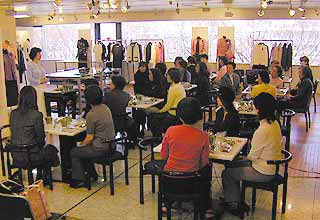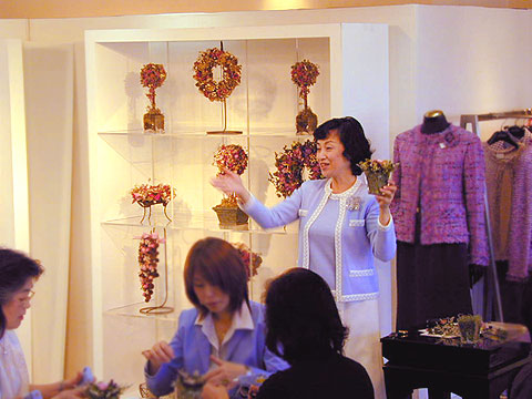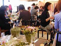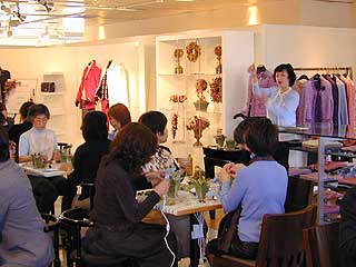 飾り棚が、[ 大きな画像 ] でご覧になれます。お店の洋服のイメージに合わせて、作品をディスプレイしていく作業も