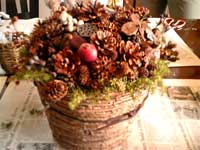 まつぼっくり、ピンクのペッパーベリー、