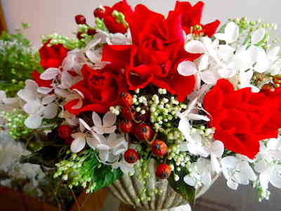 カワラハハコの白い花や黄色の小花をアレンジしたら