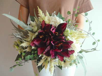 こっくりとしたワイン色のアマリリスが印象的な
