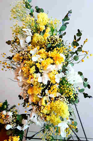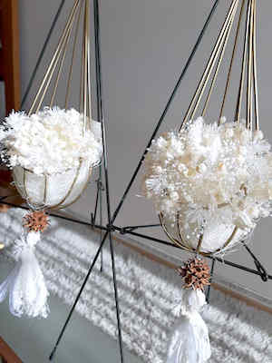 白い花材をあつめて作った