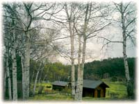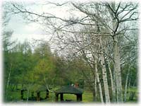 ここにくる目的のひとつは、山の上でゆっくりと温泉に入ること。 ボーっとお湯につかりながら、白樺の林が風にゆれて 木のてっぺんにとまった小鳥も一緒にゆれているのをながめています。 空を鳥がいきかい、 うすきみどりやあわいみどりいろ、うすべにいろ、ももいろ、 いろいろな色に包まれて、遠く山々はまるで笑っているように見えます。 夕方からは霧がたちこめてきて、 うすもやの中、からまつの林がゆれる山の家に帰ります。