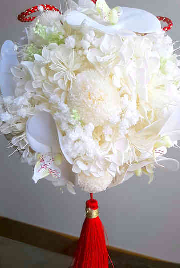 プリザーブの紫陽花で紫陽花守りを作りました。