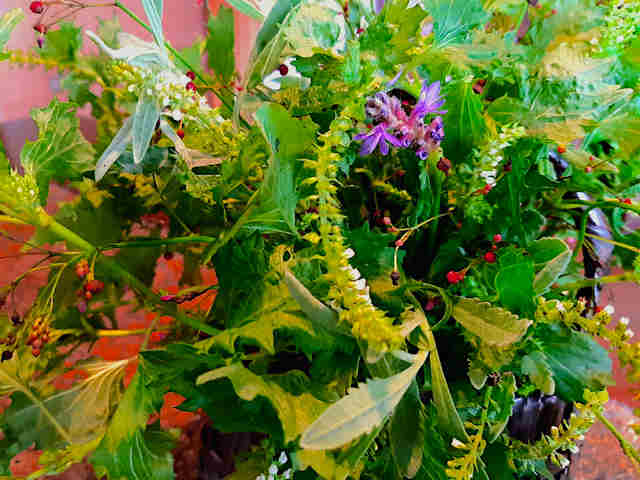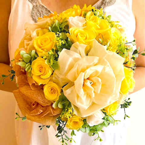 ベージュの削り花に合うアーティフィシャルの葉もの、