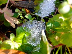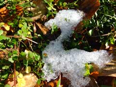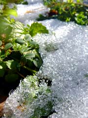 溶けずに残った雪が氷になっています。