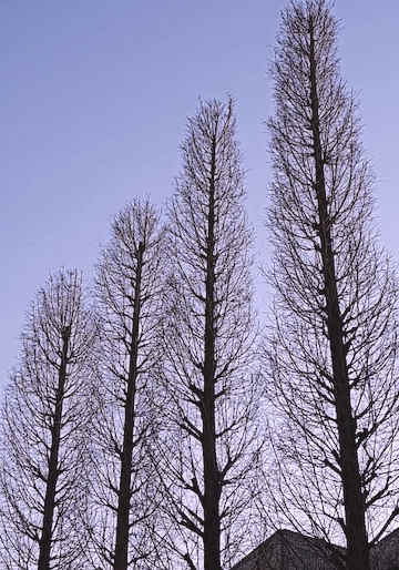すこし紫がかった空ときれいな冬木のシルエット。
