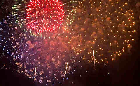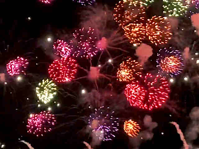 鮮やかな仕掛け花火や大玉が夜空を彩り