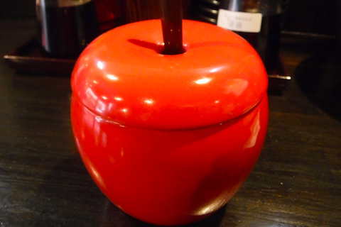 赤いりんごの入れ物。