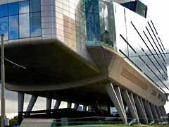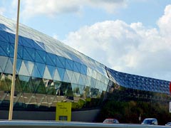 高速道路沿いに、大きな流線型の建物が見えてきました。