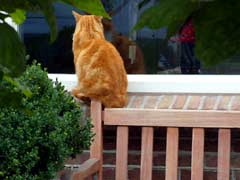 足元には、いつになれば魚の頭をくれるの? と言いたげに
