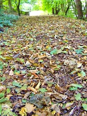 自然のまま残された、緑が一杯の運河沿いの道は、