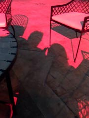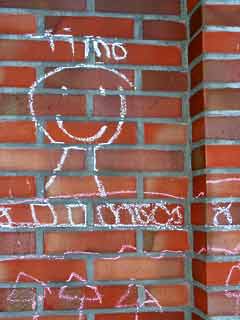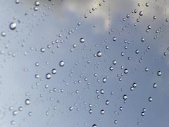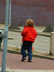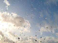 空から、しずくが落ちてきて、赤レンガの地面が、ポツポツ、