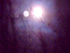今、うすむらさきいろに一瞬空がひかり輝きました。
