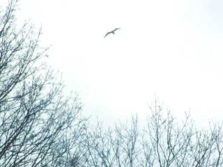羽を広げたおおきな鳥が飛んでいきます。
