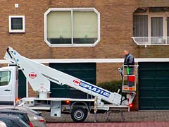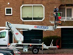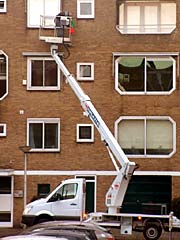 窓ふきおじさんはしごのうえ