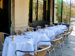 レストランのテラス席にかけられている、