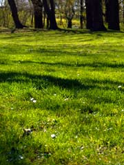 美しいみどりの芝生がひろがっています。