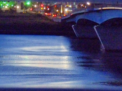 夜の運河をあかやみどりの