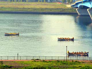 晴海運河を何艘かのカッターボートが進んでゆきました。
