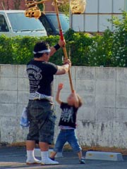 竿頭の竿をあげる練習風景に出会いました。