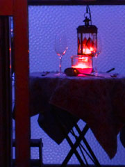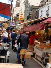 お店の間の狭い道を、猛スピードでバンバン走っていて
