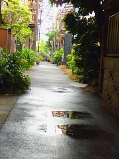 お気に入りの水色のレインコートはフードつきでベルトなし、