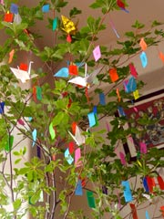 happyと書いた小さな短冊をたくさん飾りました。