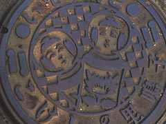 それからもうひとつ、紅葉をみに温泉に行った時にみつけたマンホールアート。