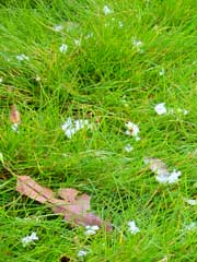 百日紅の白い花が緑の芝生に散ってきれいでした。