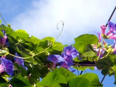 いくつもいくつも花を咲かせる青い朝顔。