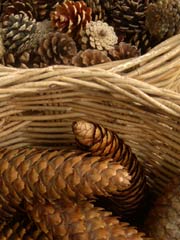 あれこれサイズちがいの松ぼっくりや檜の実、