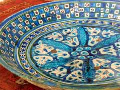 イスラムの聖なる青い色で絵付けされた大皿や