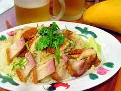 鳥のスープで炊いたおいしいチキンライス。