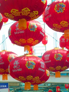 赤と黄色の提灯がきれいな