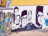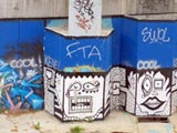 途中、見事な落書きアートのある駅を通って