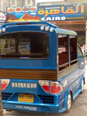 赤や青のトゥクトゥク(簡易タクシー)。
