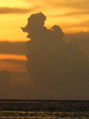 夕焼け空にモクモク広がる入道雲。