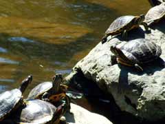 のんびりと亀が甲羅ぼしをしている池がスタート地点。