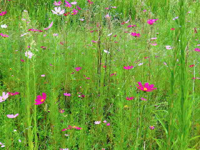 風にゆれるコスモスの花言葉は「調和」「謙虚」「乙女のまごころ」