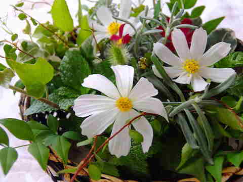木陰に楚々として咲いているような白い小花をアクセントにしています。
