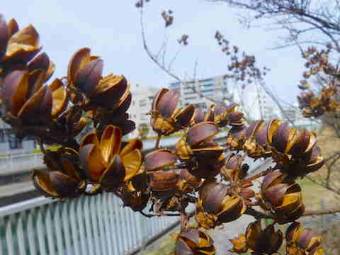 百日紅が鈴なりに実をつけています。