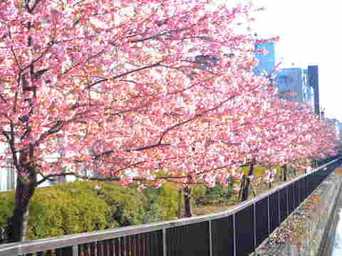 運河沿いの桜はそろそろ見ごろ。