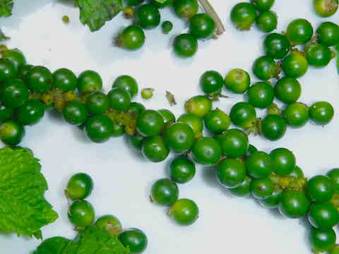 初めて見る生こしょうはきれいな緑色でした。
