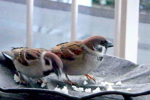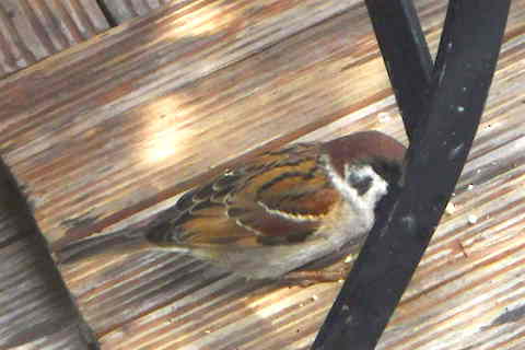 ベランダにくる雀のなかに