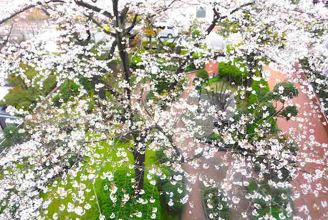 朝起きると外は桜雨。
