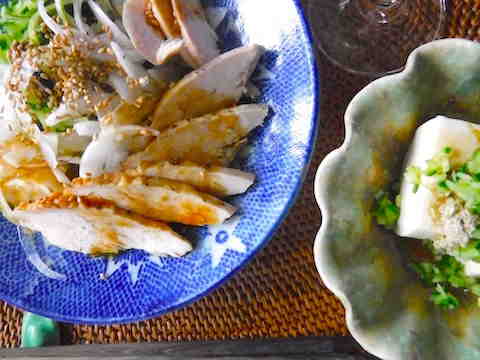 ゴマ油、さとう、塩、酢。