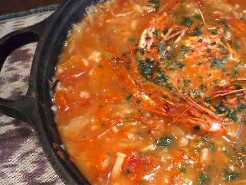 海老の頭やホールトマト、きのこ類、ご飯をいれます。