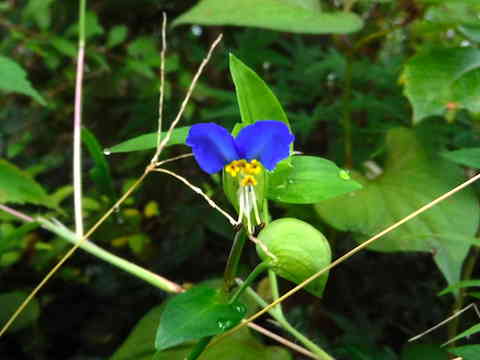 涼やかな青い花は一日花。