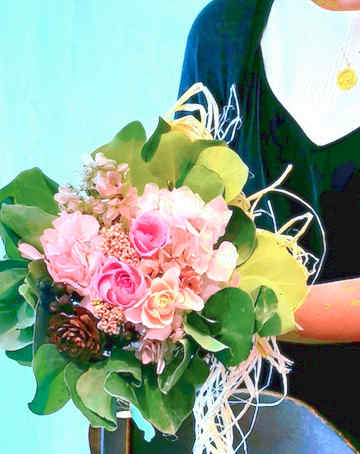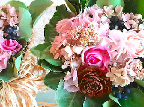 プリザーブのピンクのバラとユーカリを使って