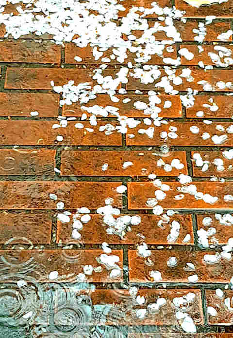 桜の花びらがたまっています。